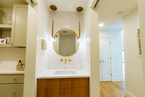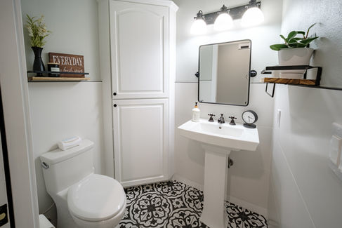 Guest Bathroom Updates | Small spaces, dated tile and fixtures | Space-saving vanities, modern lighting, and new tile |